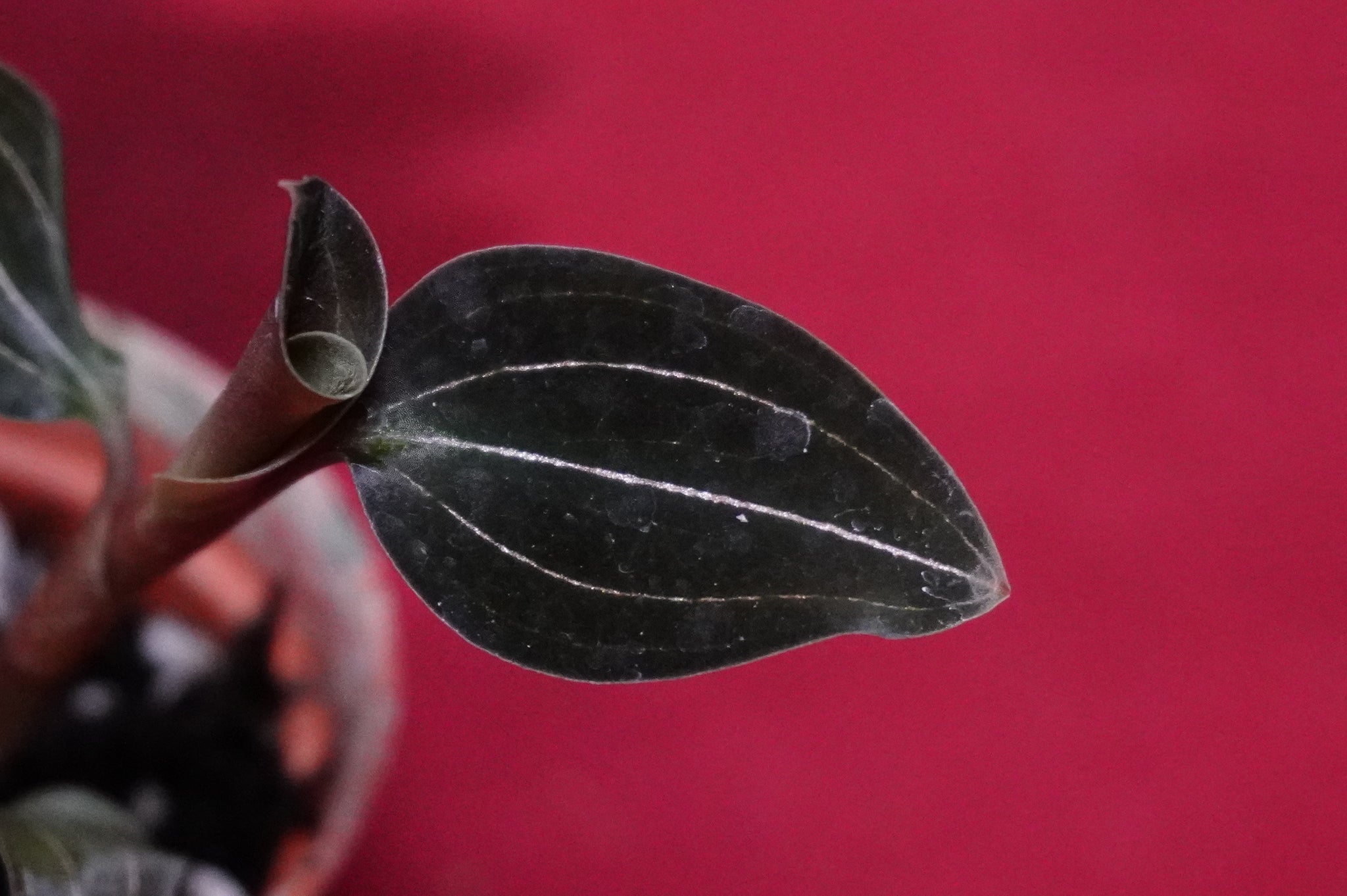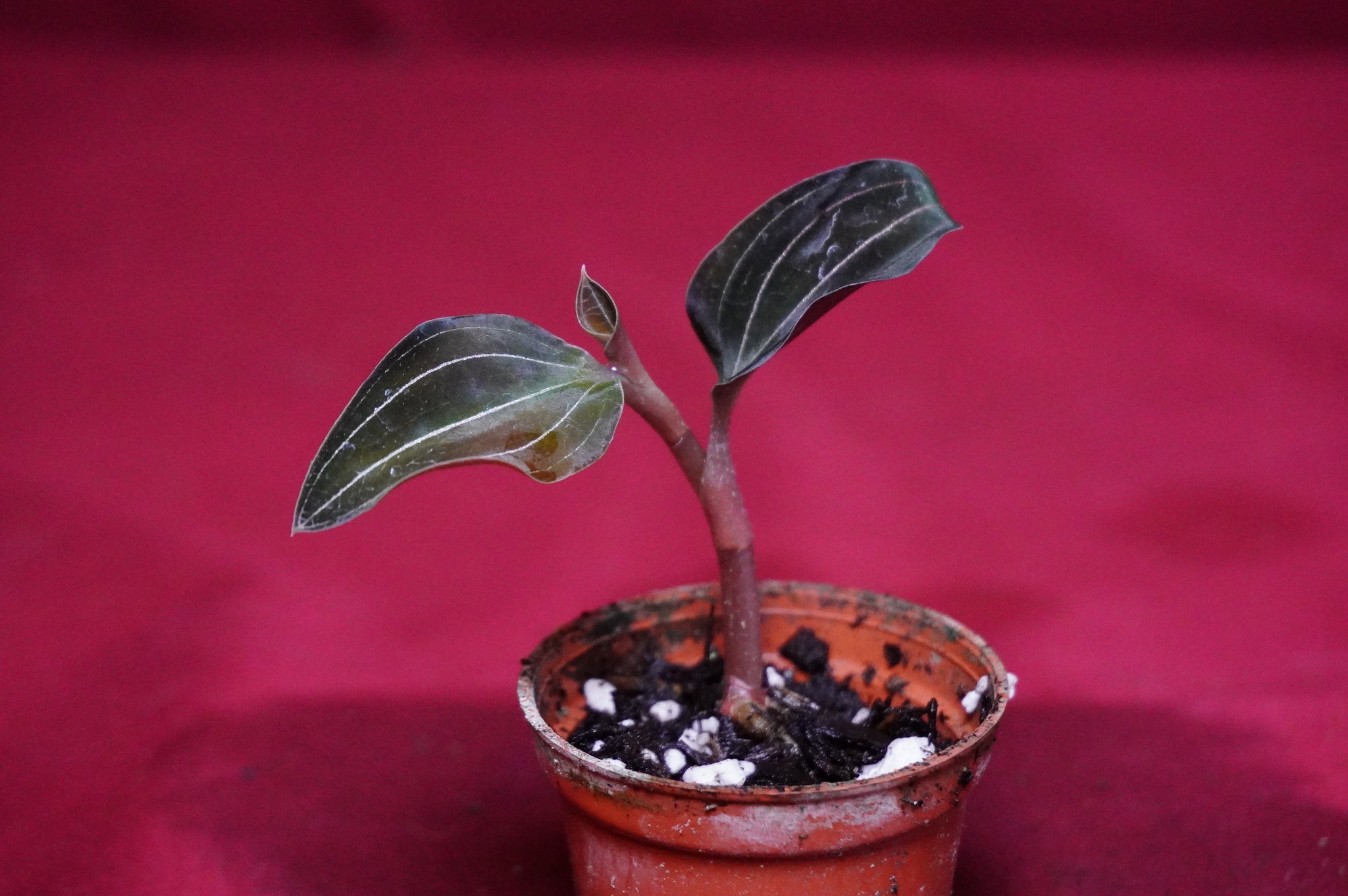 Ludochilus 'Sea Turtle' Jewel Orchid is a rare, hybrid jewel orchid—a cross between Ludisia discolor and Anoectochilus formosanus— and is treasured for its stunning foliage rather than its blooms. It features velvety, dark maroon-to-chocolate leaves decorated with intricate, shimmering white-to-pink veins that mimic the shell of a sea turtle.