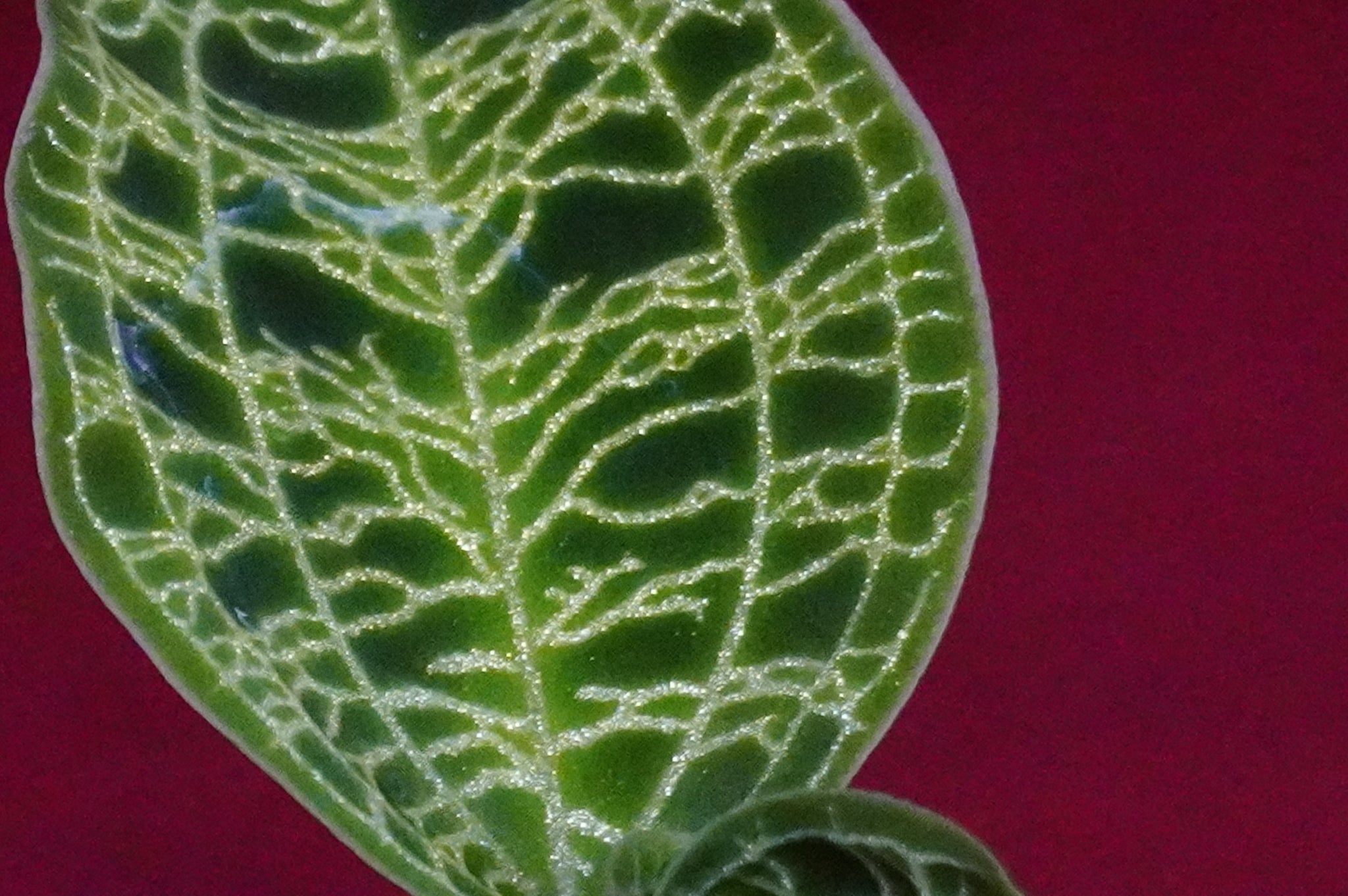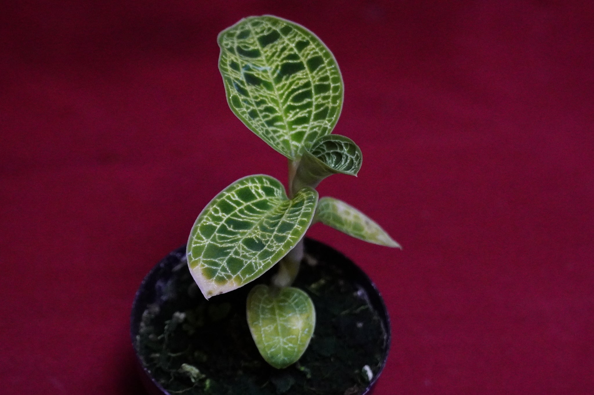 Macodes petola, the crown jewel of rare house plants. Known commonly as the Lightning Jewel Orchid, this extraordinary terrestrial orchid is cherished not for its flowers, but for its mesmerizing foliage. Its velvety, deep emerald-green leaves are adorned with intricate, glittering gold veins that create a dramatic "lightning bolt" pattern, shimmering brilliantly under bright, indirect light.