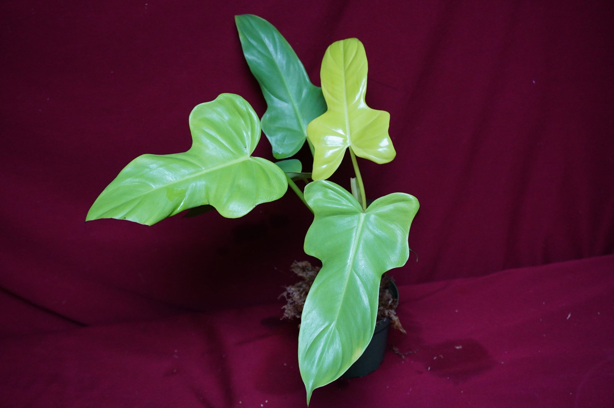 A Thai philodendron cultivar. P. Golden Violin stays fairly compact, and produces vibrant, lemon lime leaves in the shape of a violin. New leaves tend to be bright yellow, and fade to a bright lime green with age.