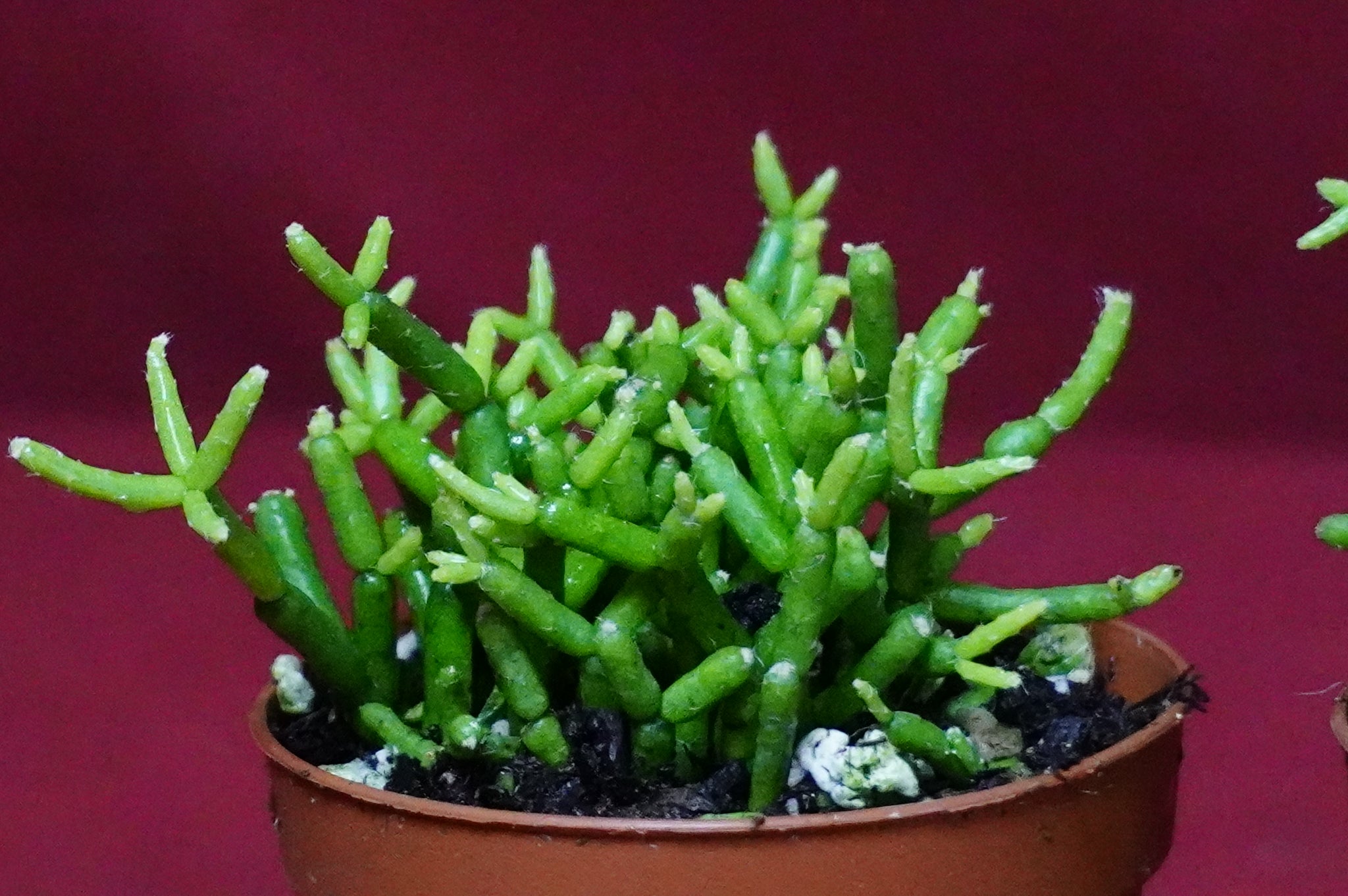 - Scientific Name: Rhipsalis baccifera (commonly: Mistletoe Cactus, Spaghetti Cactus)